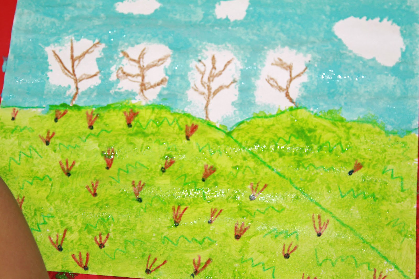 We are very lucky that our PTA pays for our "Art Smarts" program. I am very grateful to them, because I feel like this is a wonderful program that benefits our school. This time the kiddos learned about Monet. The finished products were wonderful. I am so happy I took pictures of the steps.